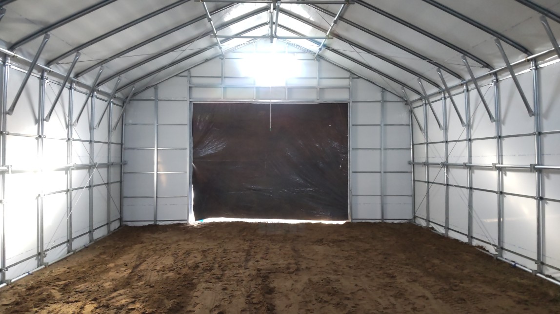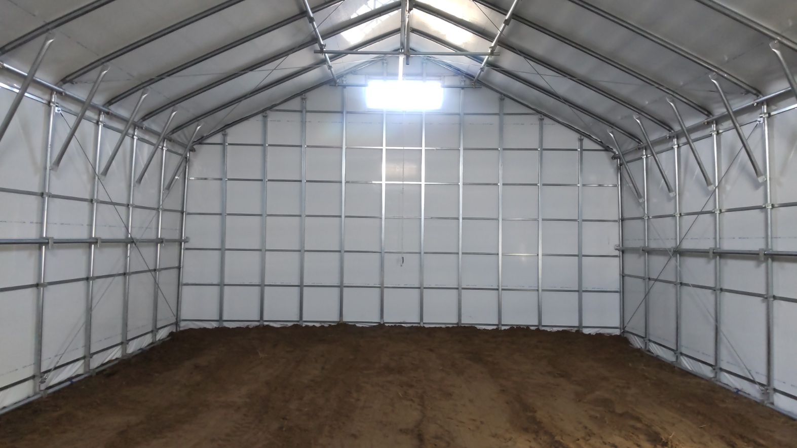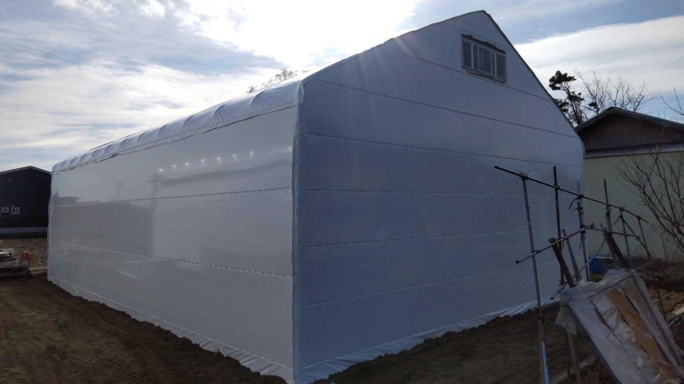 秋田県潟上市 雪勝格納庫ハウス 施工事例 2024/01/26 施工概要 施工内容 雪勝格納庫ハウス 施工 エリア 秋田県潟上市 使用用途 格納庫 面積 間口7.2m×奥行10.8m=77,76㎡(24坪) 仕様詳細 主骨材 単管パイプ 48.6φ 軒高 3.0m 褄面 前面:軽量シャッター W4000×H3000 後面:密閉 被覆材 天井・側面:白白コート5 褄面 :白白コート5