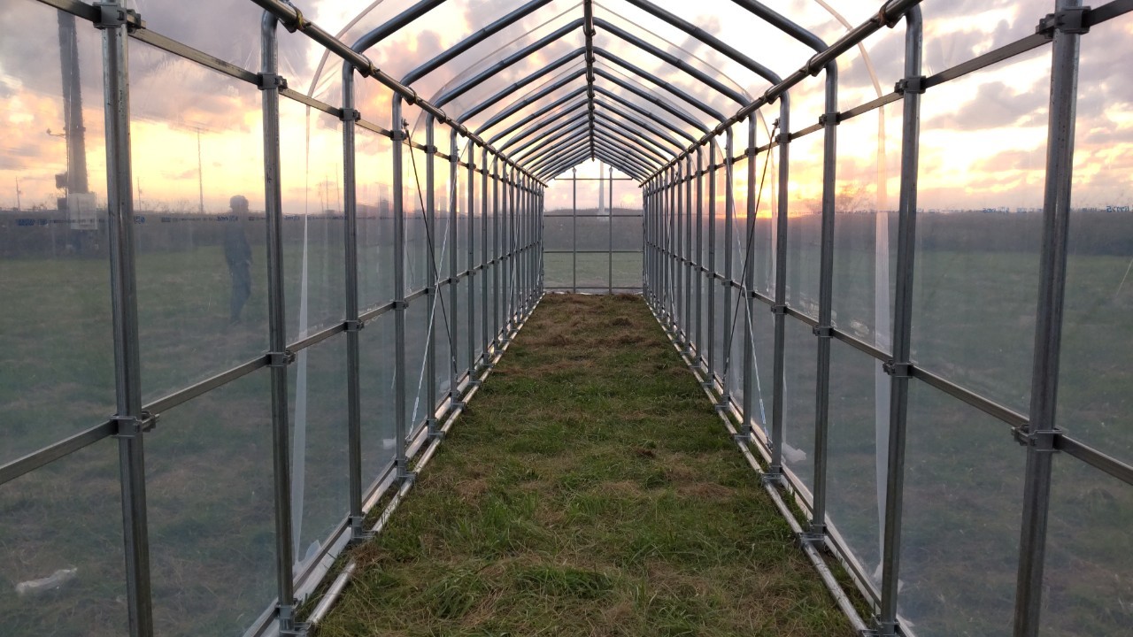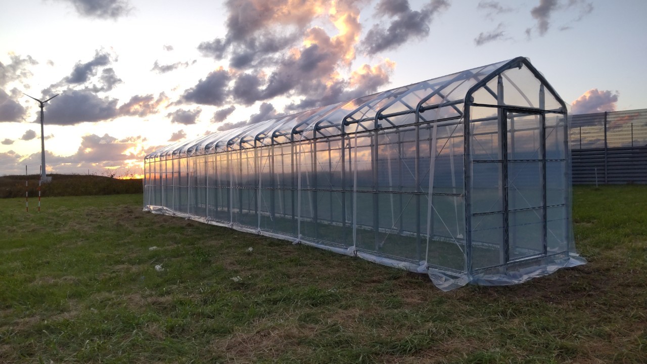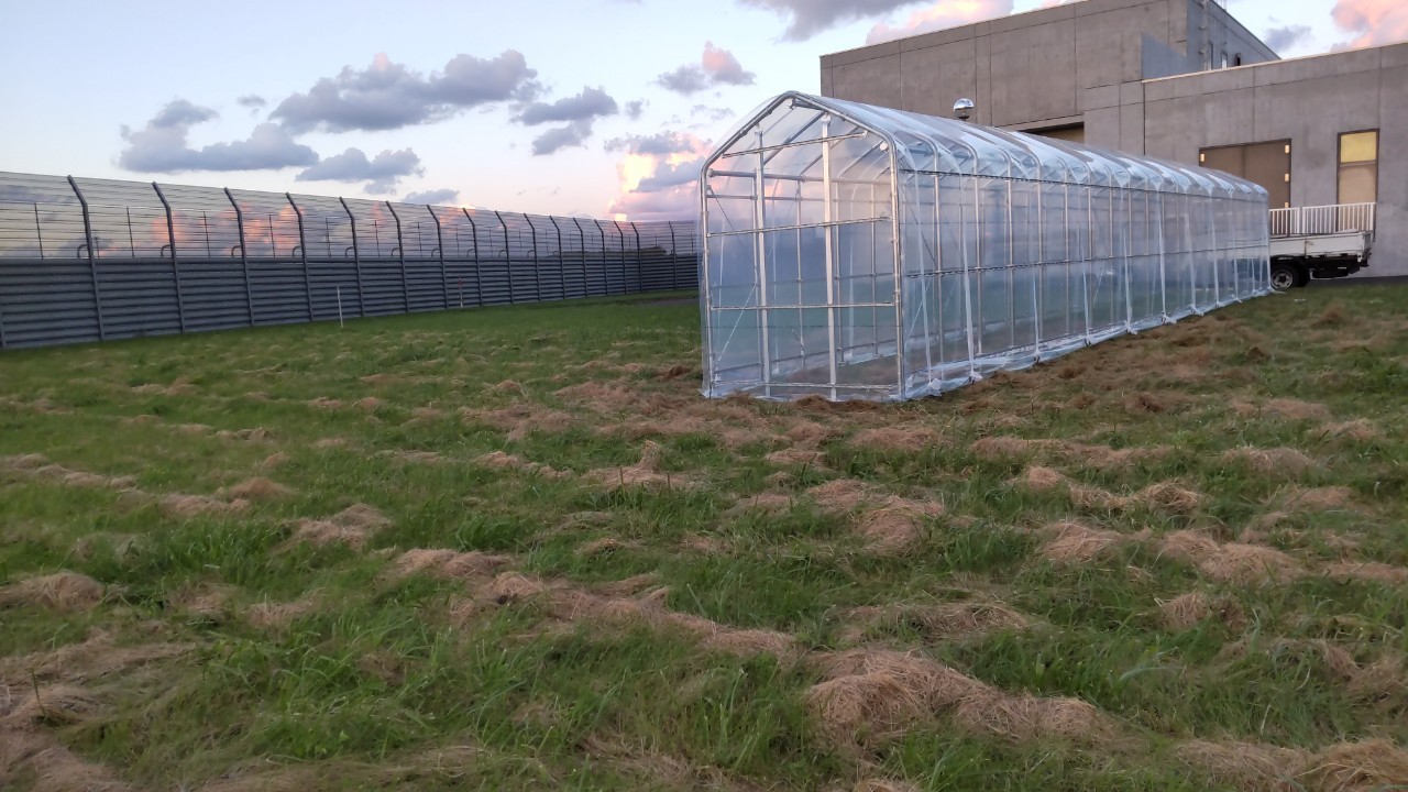 北海道苫前郡苫前町 雪勝実験棟ハウス 施工事例 2023/10/26 施工概要 施工内容 雪勝実験棟ハウス 施工 エリア 北海道苫前郡苫前町 使用用途 実験棟 面積 間口2.0m×奥行16m=32㎡(9.7坪) 仕様詳細 主骨材 単管パイプ 48.6φ 軒高 2.0m 褄面 前面:開き戸 後面:密閉 被覆材 天井・側面:バツグン5 褄面 :バツグン5
