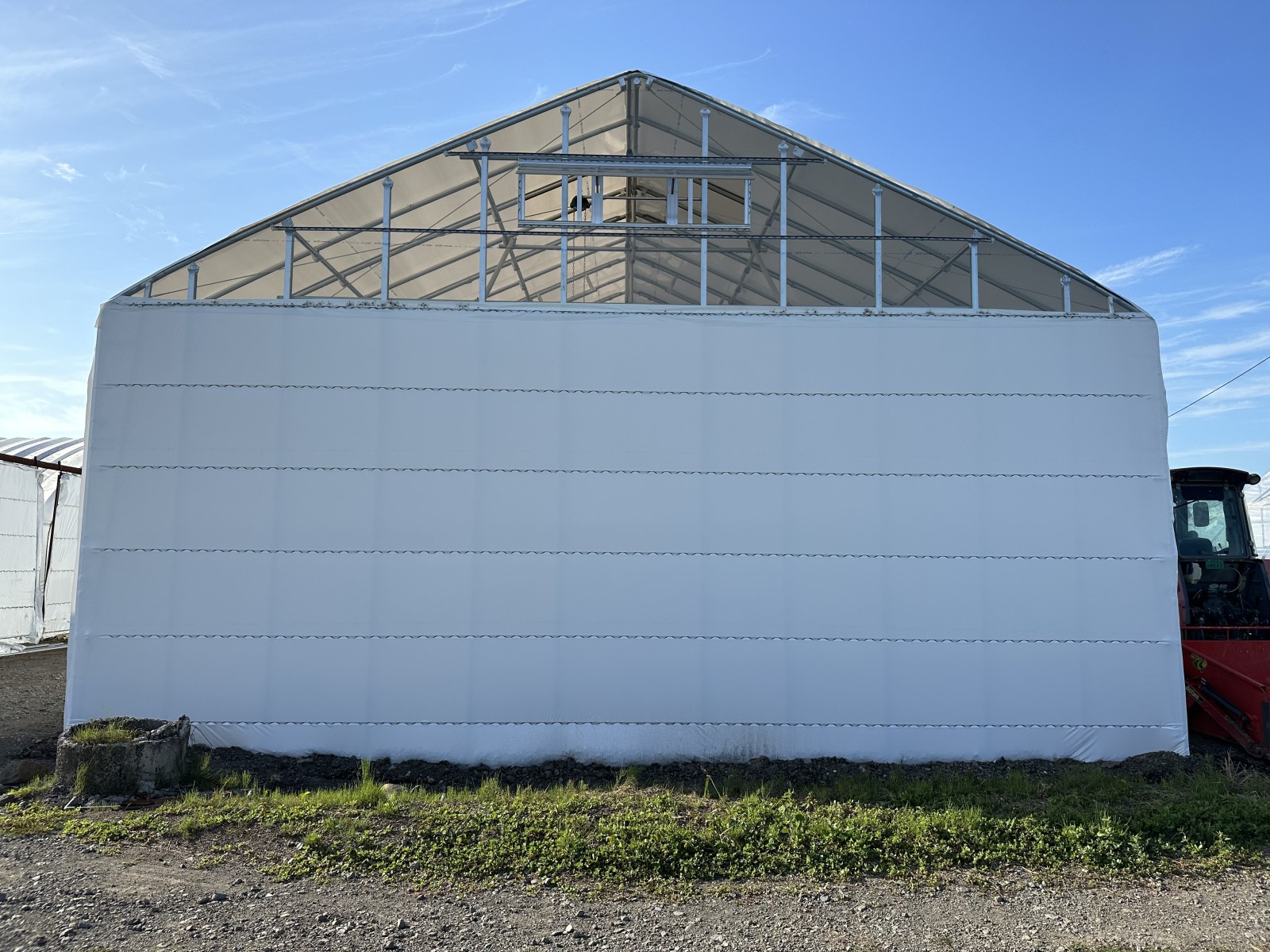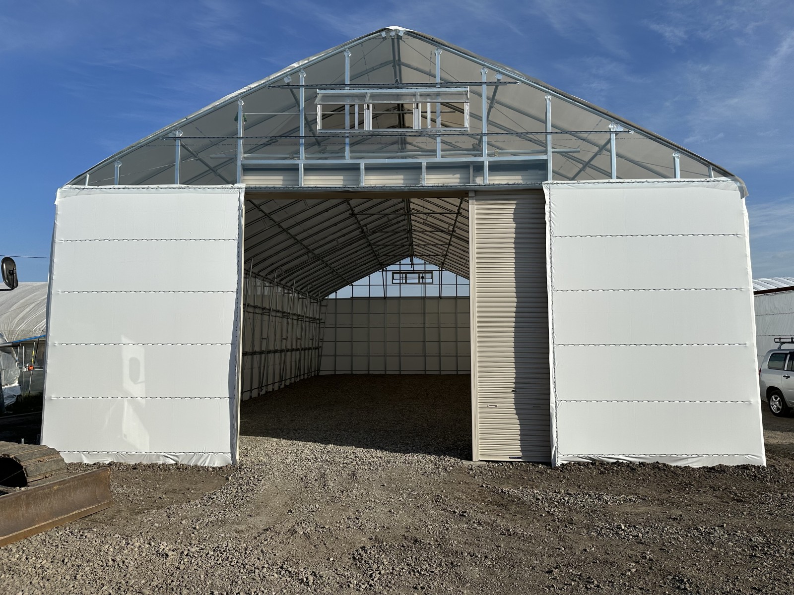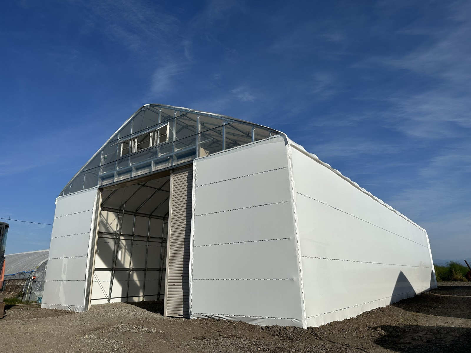 旭川市東鷹栖 雪勝格納庫ハウス 施工事例 2023/09/08 施工概要 施工内容 雪勝格納庫ハウス 施工 エリア 北海道旭川市東鷹栖 使用用途 格納庫 面積 間口9.0m×奥行19.2m=172.8㎡(52.4坪) 仕様詳細 主骨材 単管パイプ 48.6φ 軒高 3.5m 褄面 前面:軽量シャッター 後面:密閉 被覆材 タフシェード 真っ白