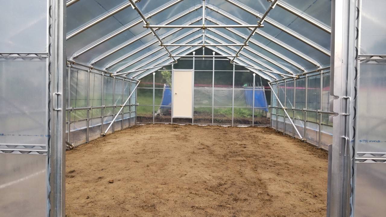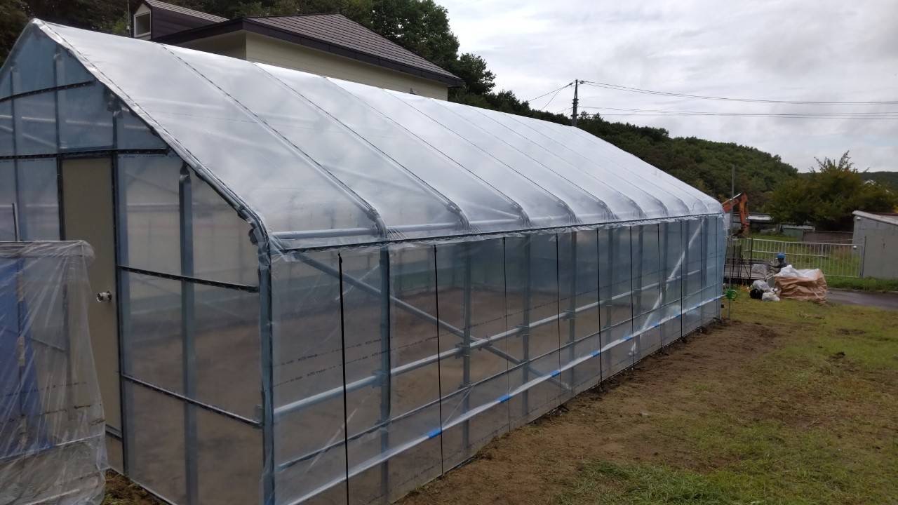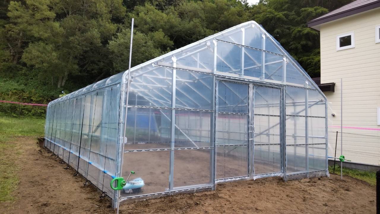 釧路市 家庭菜園用雪勝ハウス 施工事例 2023/09/08 施工概要 施工内容 雪勝家庭菜園用ハウス 施工 エリア 北海道釧路郡釧路市 使用用途 家庭菜園 面積 間口5.4m×奥行9.0m=48.6㎡(14.5坪) 仕様詳細 主骨材 単管パイプ 48.6φ 軒高 2.0m 褄面 前面:引分戸 後面:アルミ扉 被覆材 バツグン5